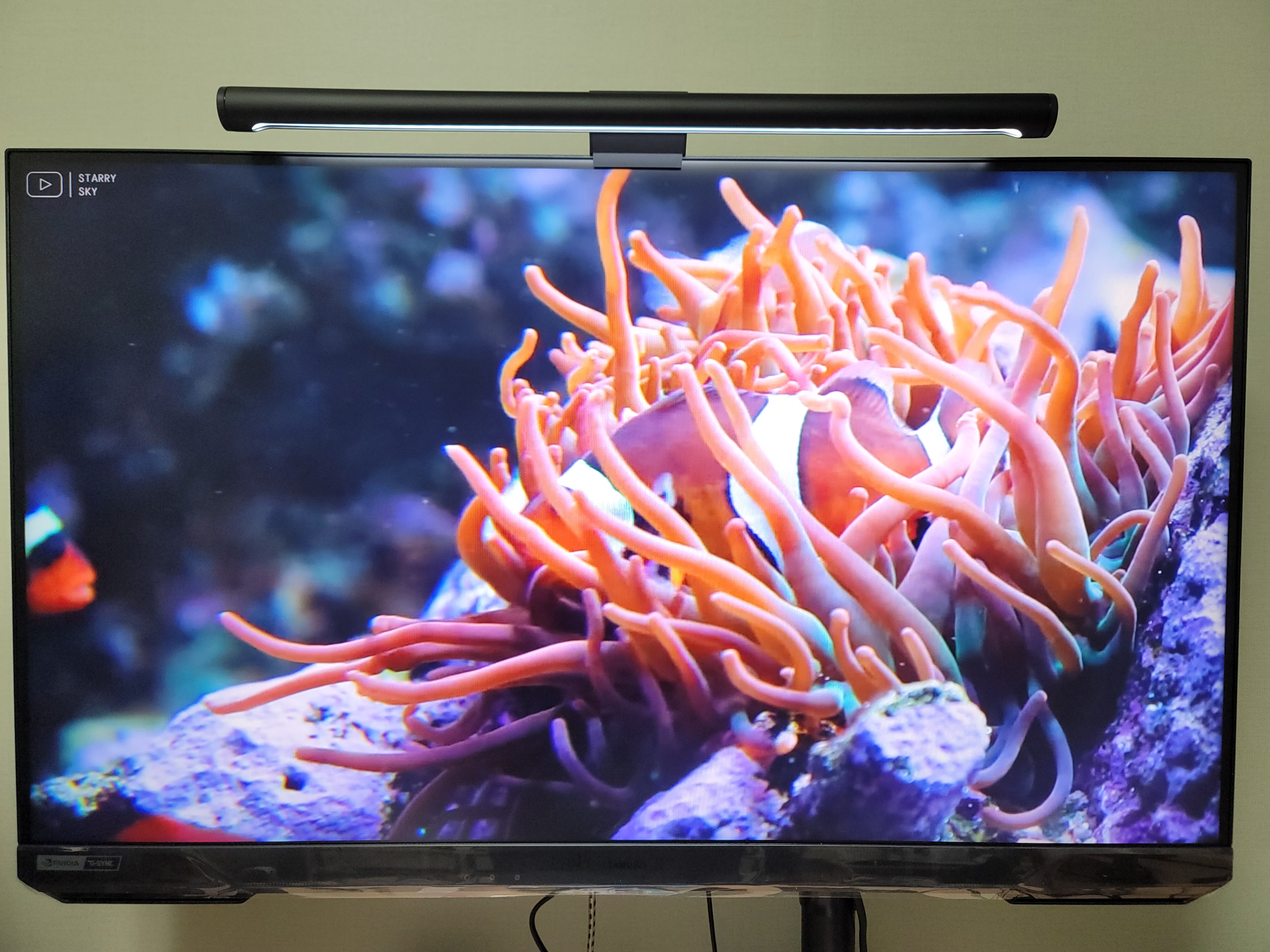 모니터 위에 모니터 조명도 잘 거치된다. LG 모니터는 뒤에 게이밍 이미지를 위해 뒷부분이 더 나왔는데 크기가 너무 커 모니터 조명의 거치대가 기울어진다 ㅠㅠ; 그래서 이번에 LG 모니터도 살펴보다가 모두 포기했다.