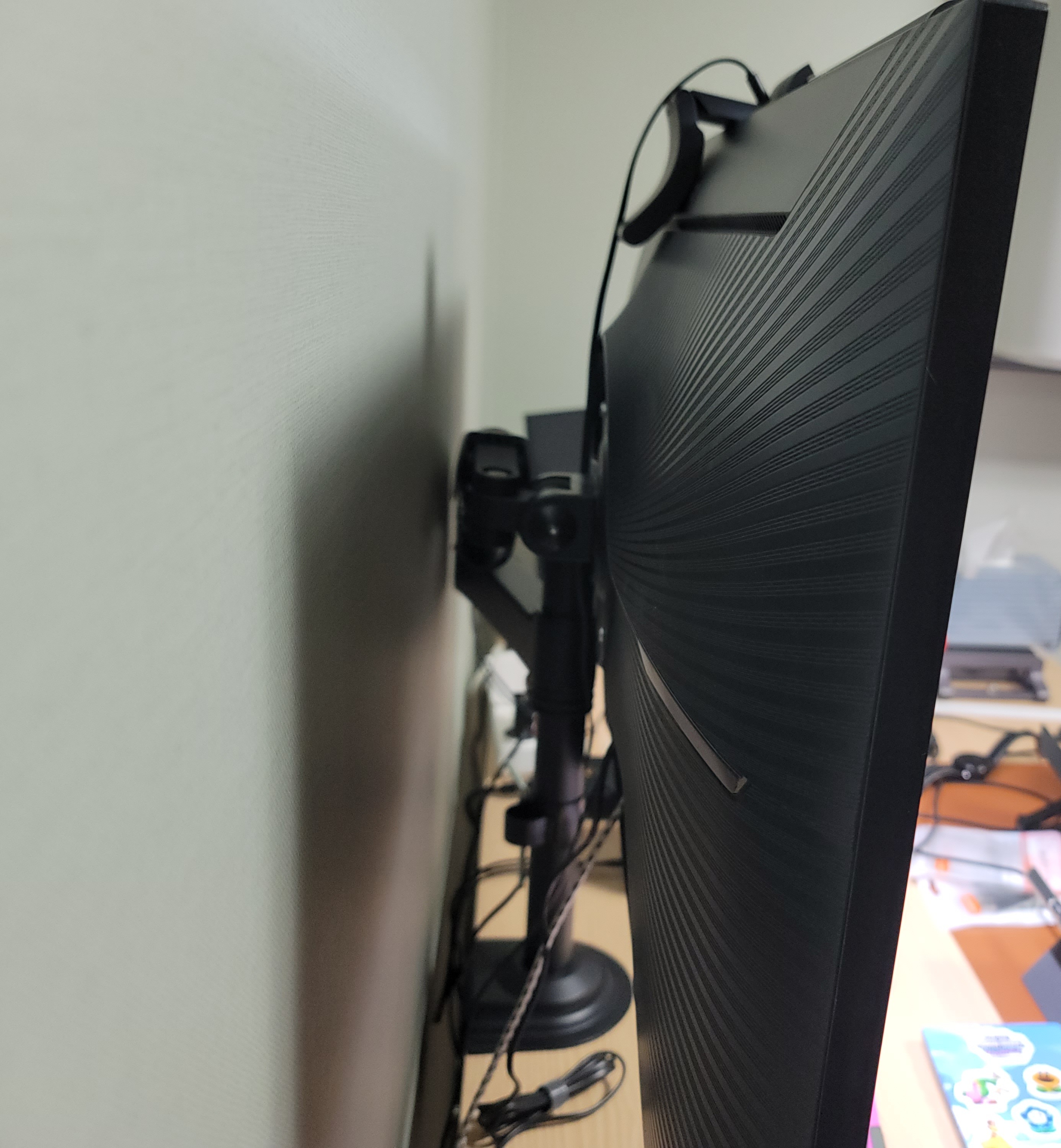 모니터암을 사용 중이었기에, 베사홀에 바로 연결해서 후다닥 설치를 마쳤다.